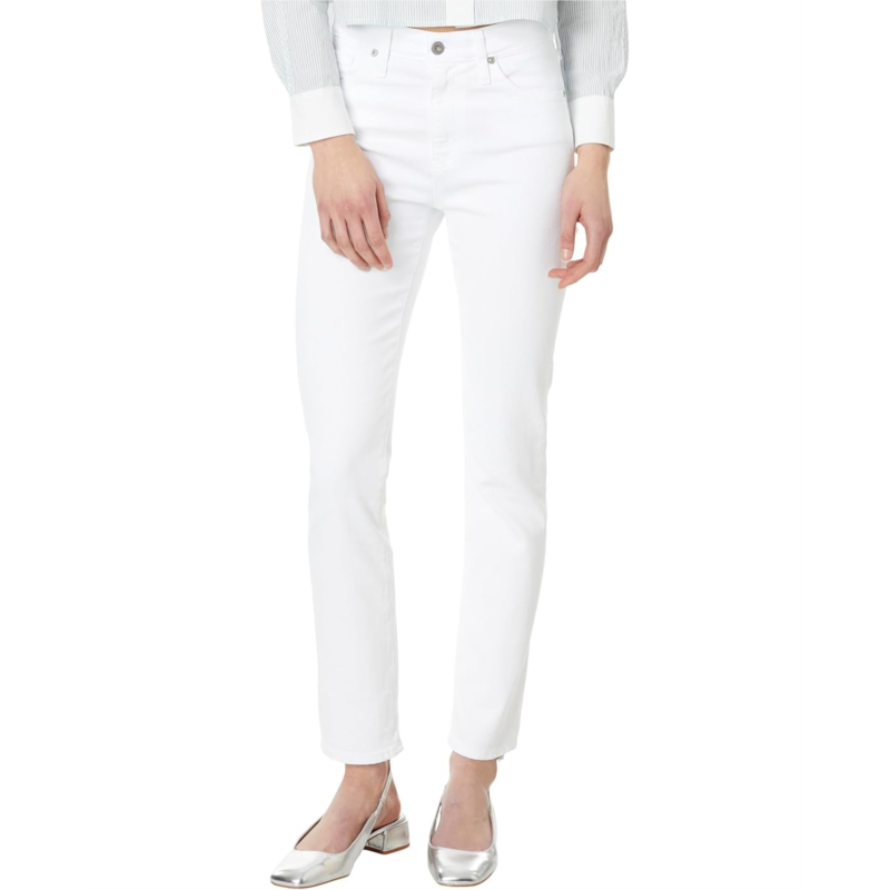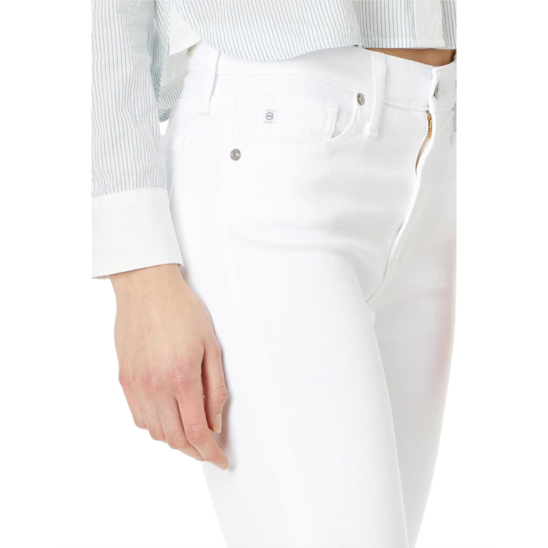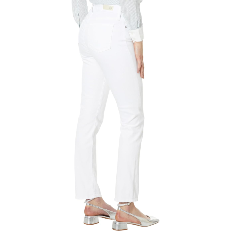 The AG Jeans Mari in White Jeans is your classic everyday jeans for daily commutes or casual hang outs. The jeans features a low-rise waistband with belt loops, zip-fly and button closure, five-pocket styling, brand logo patch at the back waist, and a straight leg style.