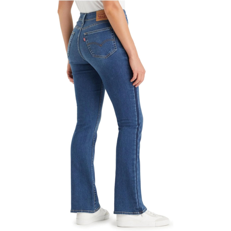 Embrace the timeless and figure-flattering style of the Levis Womens 725 High-Rise Bootcut Jeans. These jeans feature a high-rise waist and a slim-leg style with a subtle bootcut at the hem, ensuring a stylish look that enhances your curves. Engineered with a zip-fly button closure on the front, they make styling a breeze.