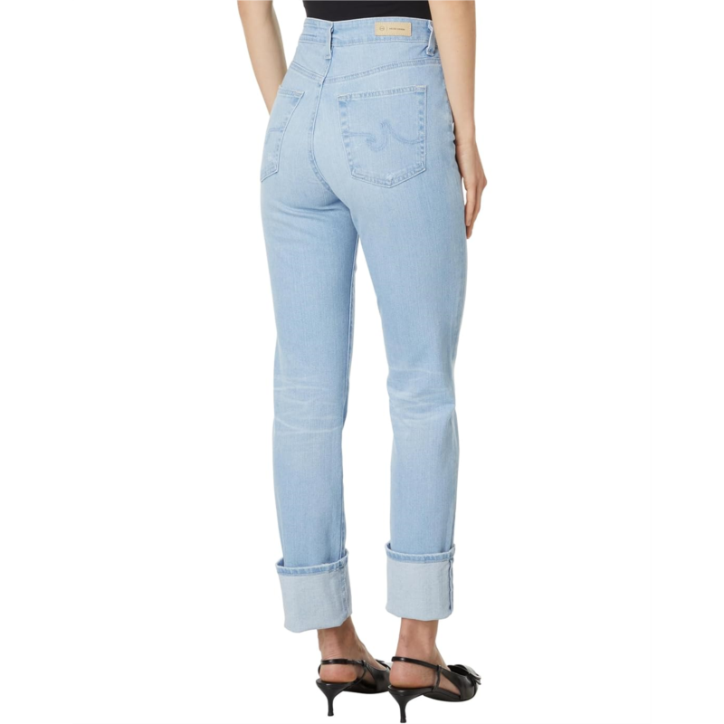 The AG Jeans Saige High Rise Straight Crop Jeans are finished with a zip fly, buttoned, closure, belt loops, and an angled yoke that lands at that perfect ankle length. These denim jeans feature a cropped leg design and a high-rise waist. The cotton blend fabric with a light wash offers superior comfort and style. These high-rise jeans are turned up at the hem for wide cuffs. Match your casual tops and shirts wearing these cropped jeans.
