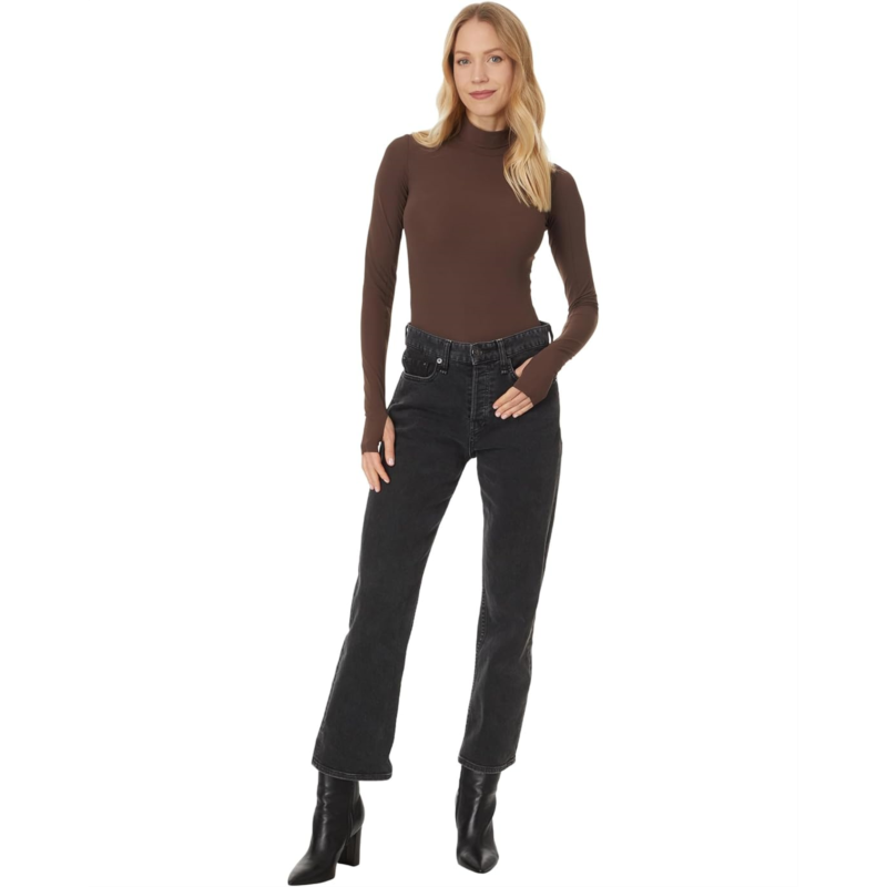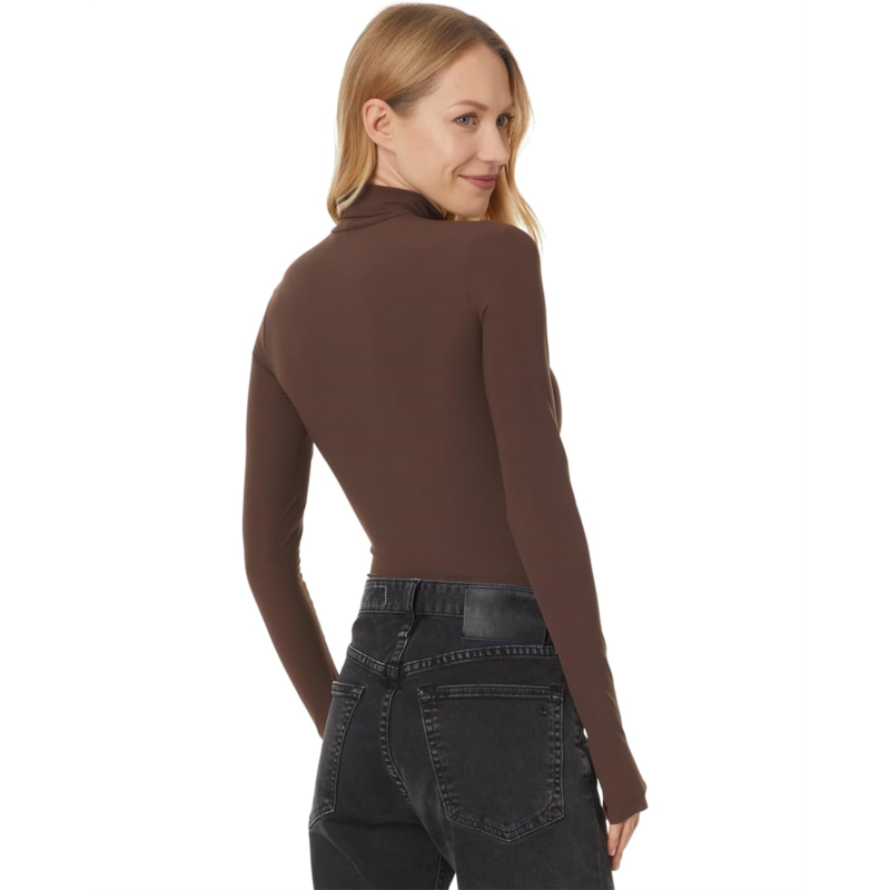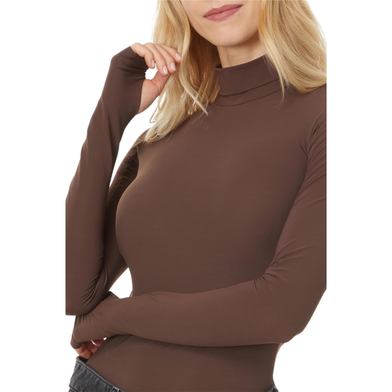 The Commando Classic Printed Turtleneck Bodysuit w/ Thumbholes BDS203 creates a sleek look perfect for any occasion. Its seamless butter knit and mock turtleneck give it a chic look.