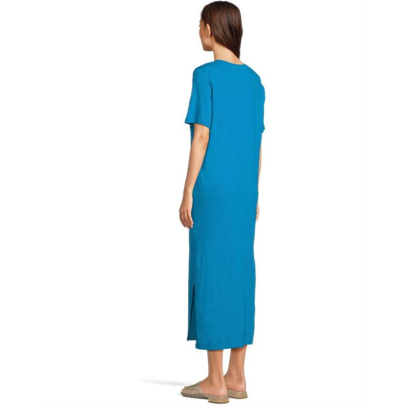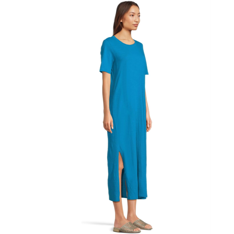 Soft and light, an organic cotton jersey with the visual texture that comes from a very fine slub yarn. Now grown using regenerative farming methods that support soil health and biodiversity. The EILEEN FISHER Crew Neck Dress offers a crew neckline with short sleeves and side slits in a pull-on style. A perfect match to your casual style.