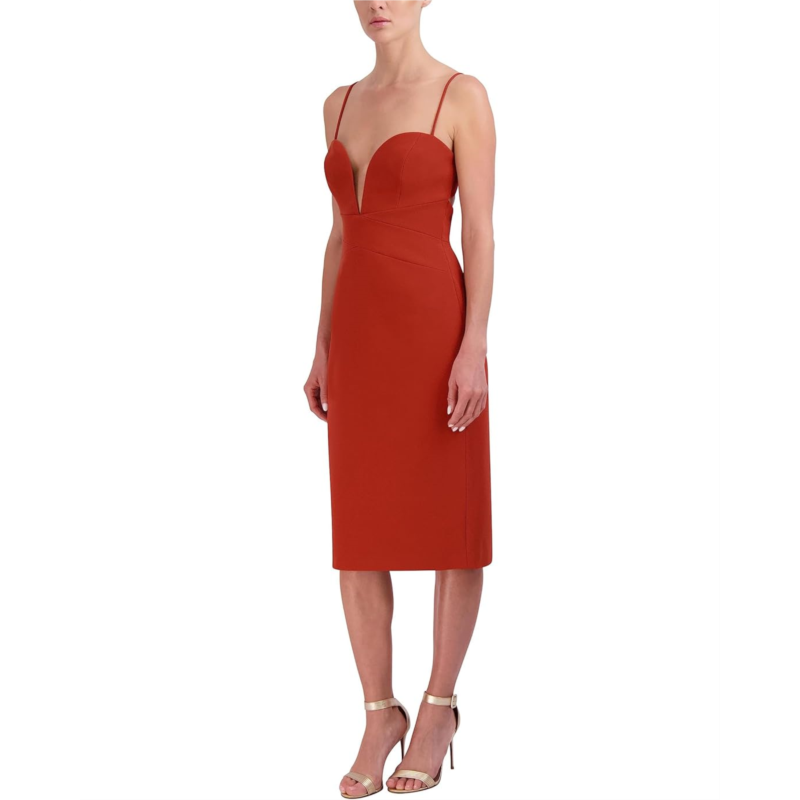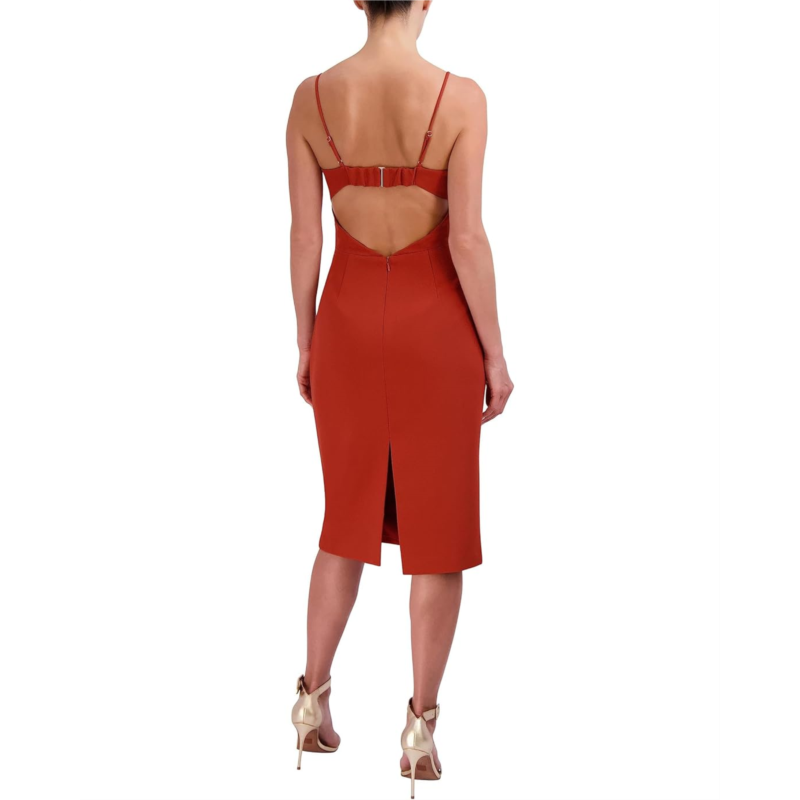 Stun them all by entering the cocktail party in the bold and vibrant BCBGMAXAZRIA Stretch Double Face Crepe dress highlighting an iconic cut-out back design.
