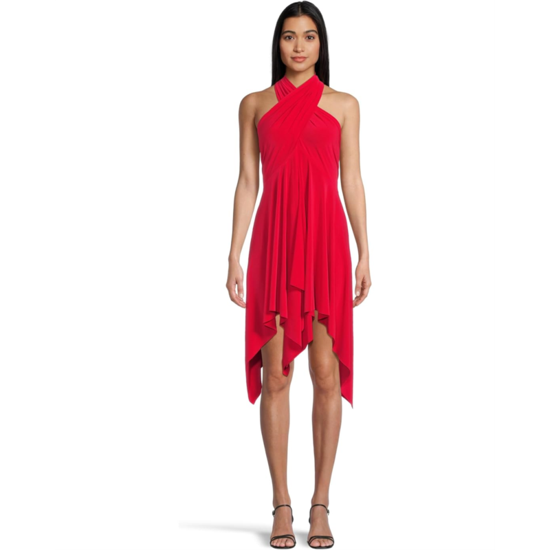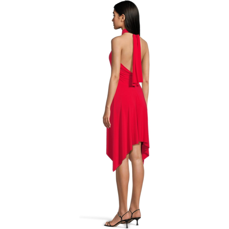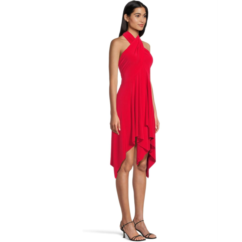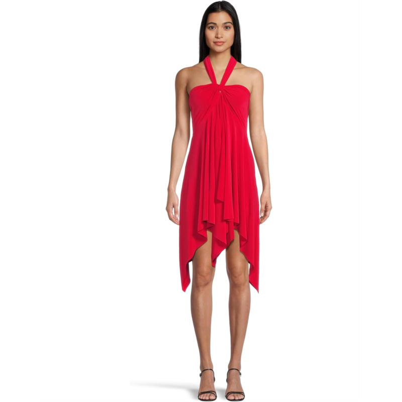 The Norma Kamali Convertible dress offers endless styling possibilities with its versatile design that can be worn as a dress, skirt, top, or poncho. It is designed with a wrap-and-tie closure and a halter neckline for styling. This sleeveless dress is made from a polyester blend fabric for superior comfort and stretchability. Featuring a playful handkerchief hem, its the perfect piece for dynamic, fashion-forward wardrobes.