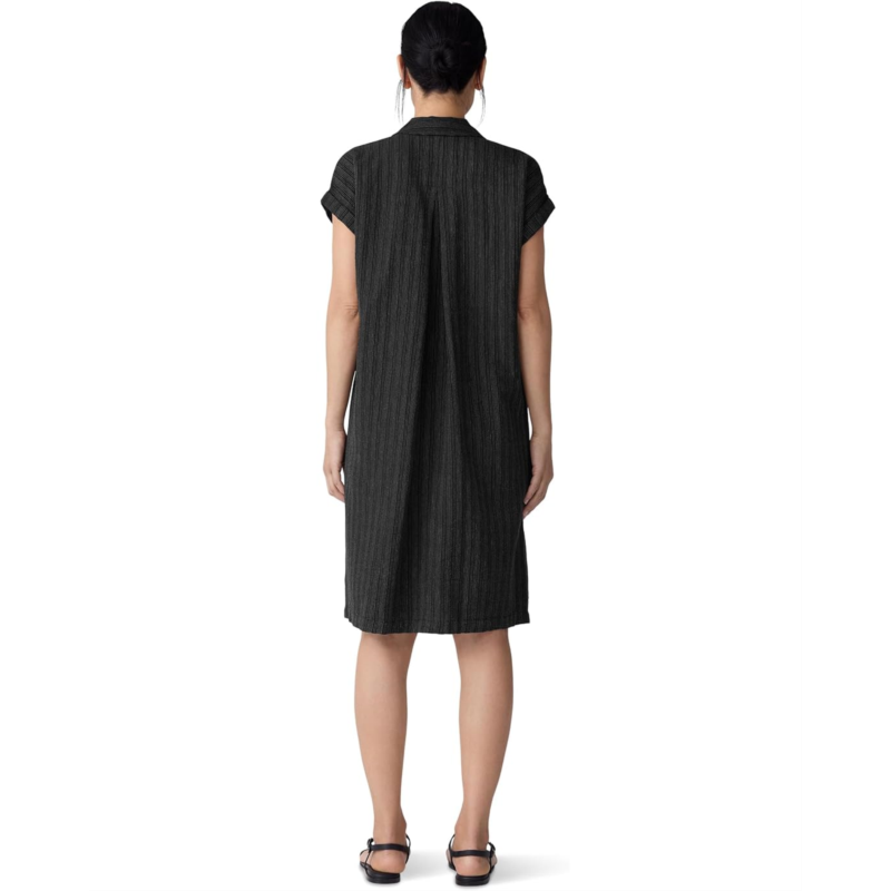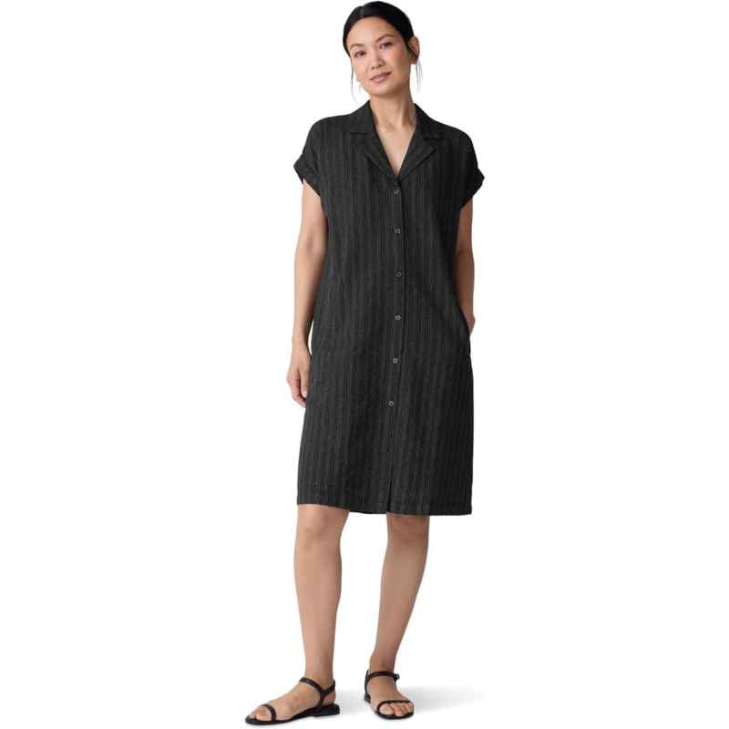 [US] Eileen Fisher Cotton Blend Stripe Stitch Notch Collar Shirt Dress