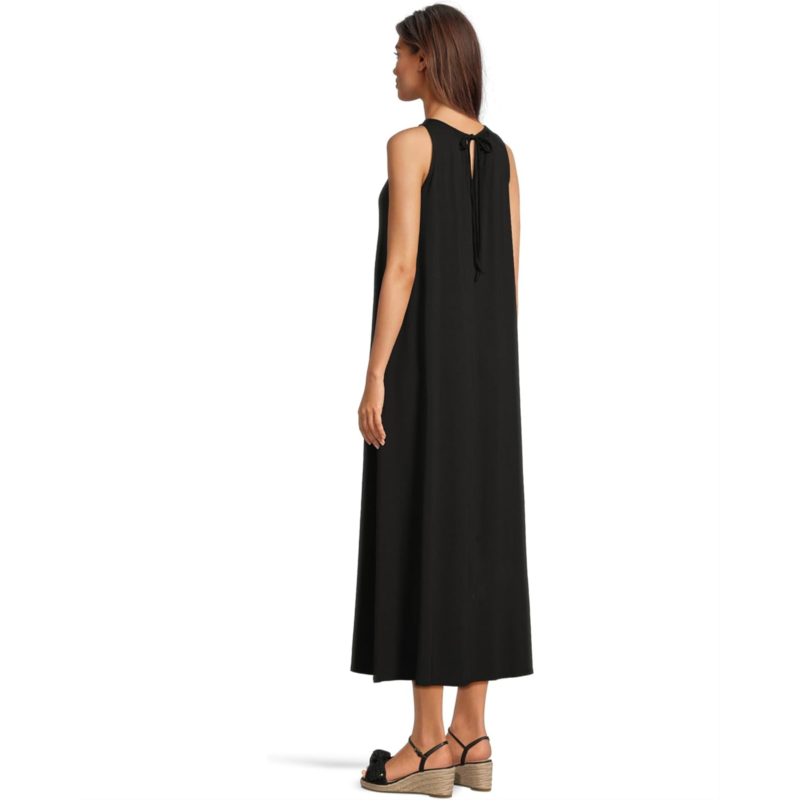 A body-skimming jersey that goes from day into night, the Eileen Fisher Fine Stretch Jersey Knit Maxi Dress is a perfect choice for casual outings. This sleeveless dress is made from fine stretch jersey knit fabric that provides all-day comfort and breathability. It is styled with a crew neckline, tie closure at the back, and a pleated hem. This maxi dress is right for any occasion.