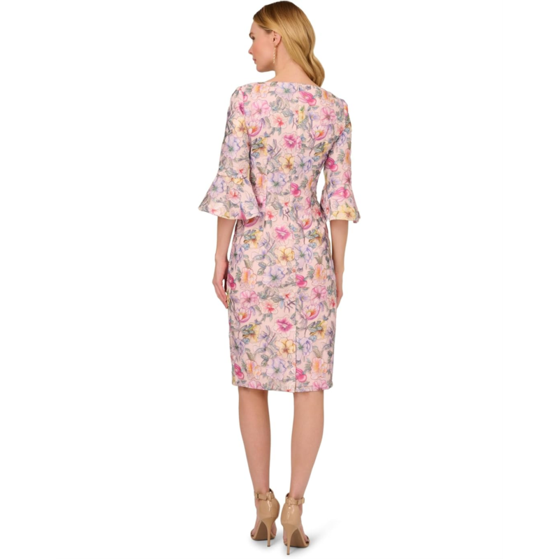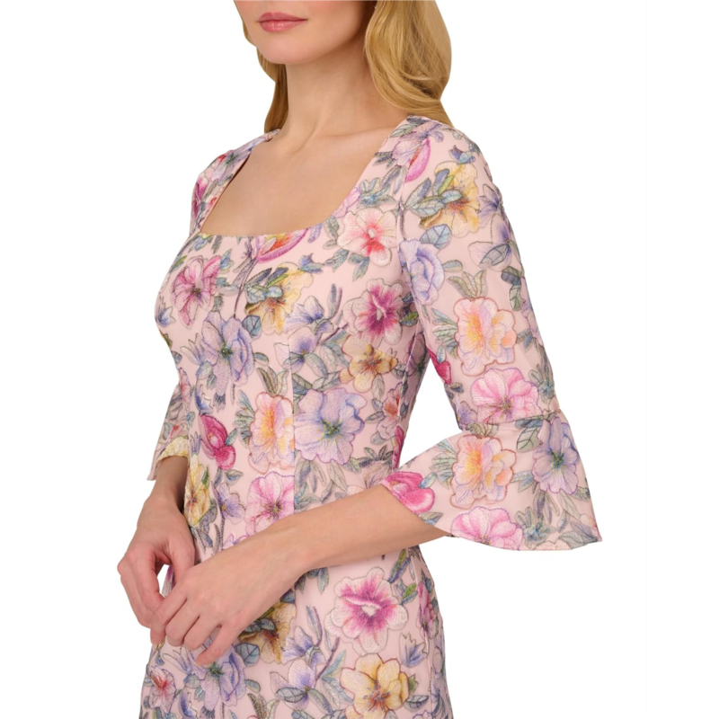 Flaunt your feminine charm by styling the floral printed short dress from Adrianna Papell. This dress features a square neck, a sheath silhouette, and a zippered closure for a flattering fit. The embroidery adds a delicate and refined touch to this lovely dress. With elbow sleeves and above-the-knee length, this dress is perfect for any season and occasion.