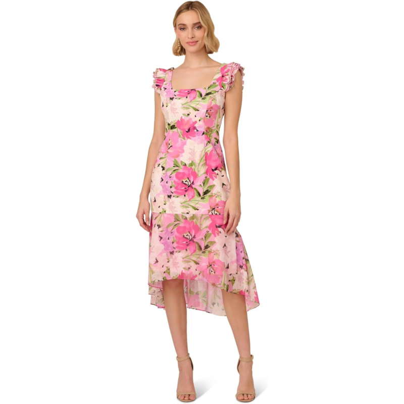 Add a colorful twist to your everyday looks and styles by wearing the Adrianna Papell Printed Midi Dress.