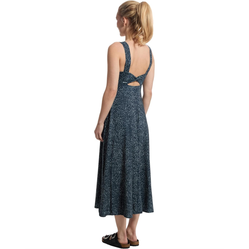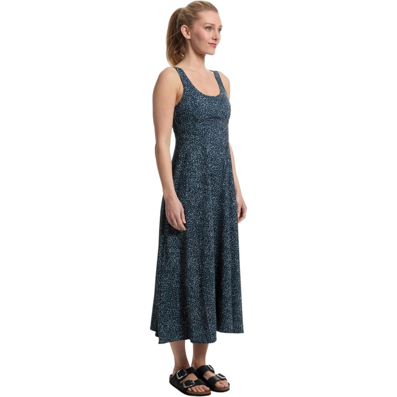Stay comfortable and stylish all day by wearing the Prana Lata Beach Dress. Crafted from polyester knit fabric that offers superior comfort and a drape, this long dress offers a flattering fit. The full skirt, sleeveless style, and scoop neckline add to its style. Featuring UPF 30+ protection, this flowy dress protects you from harmful sun rays. The twisted detail at the back offers a stylish appeal. A perfect choice for beach trips and casual outings, this printed dress works for different occasions.