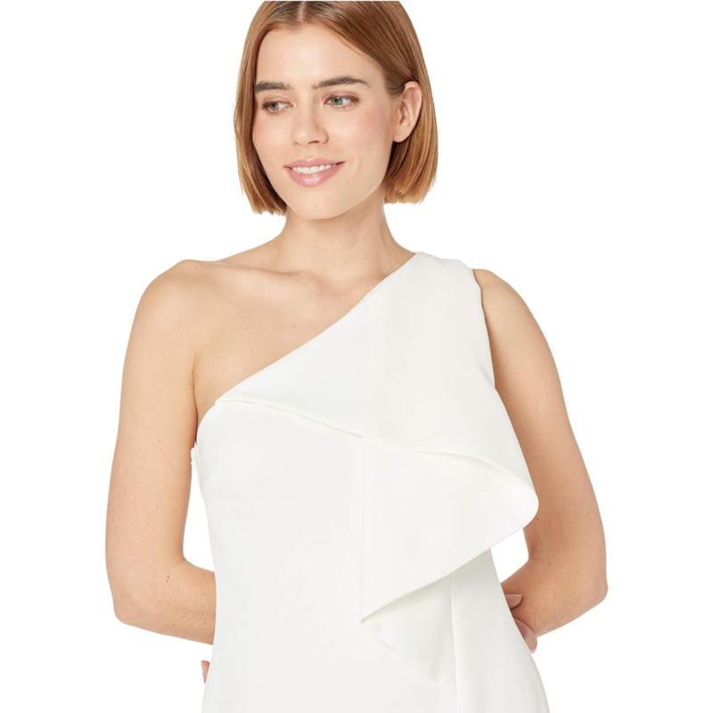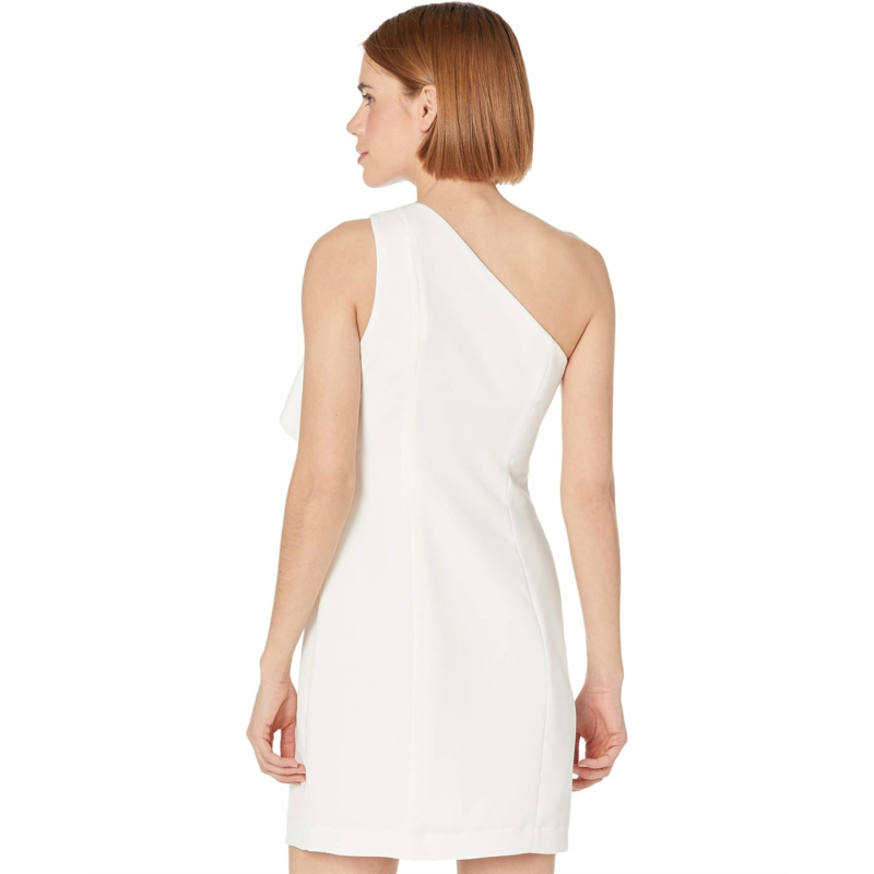 Elevate your style to a daring new level with the HALSTON Brigitte Flounce Dress. The stretch crepe cocktail dress with draped flounce at the bodice that creates a beautiful silhouette.