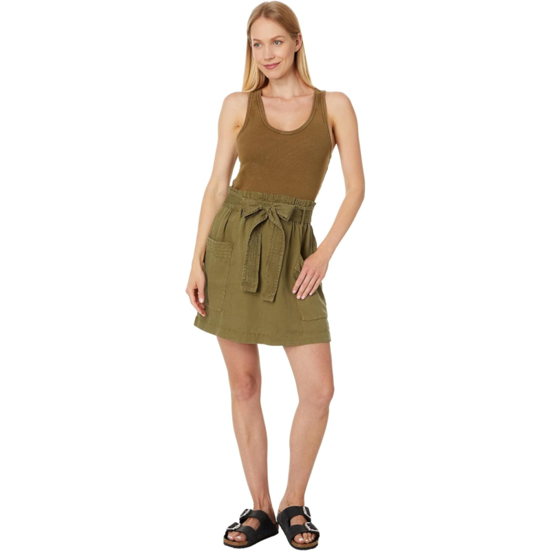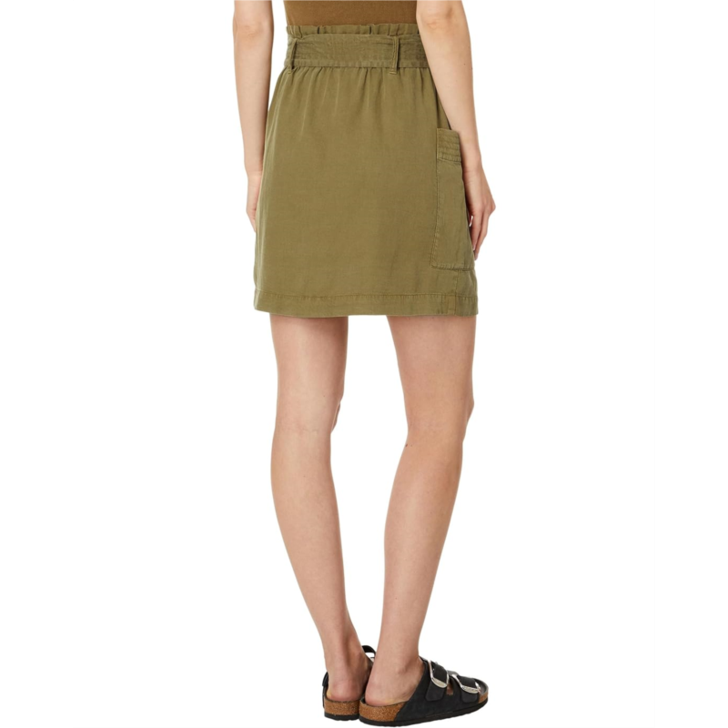 Complement your stylish tops with the Faherty Arlie Utility Skirt for a refined statement look. The pull-on style skirt features a pull-on silhouette, two patch pockets on the front, a high-rise ruffled waist with an adjustable tie belt, and an above-the-knee silhouette.