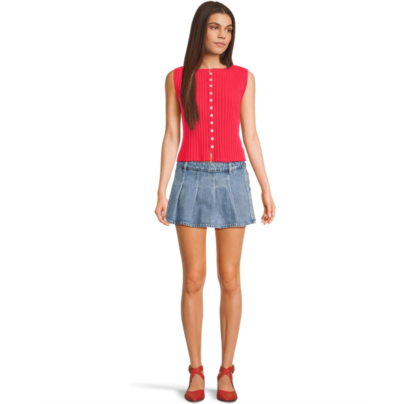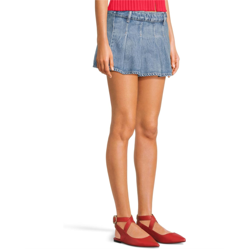 Look effortlessly cool in the Free People Stephie Denim Skort. This low-rise denim skort features a classic A-line fit with wrap-front detailing and pleating throughout. The zippered side and offset closure add a touch of edgy flair, while the shorts lining underneath ensures all-day comfort.