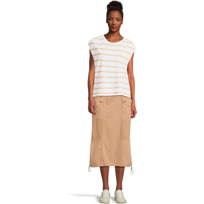 Designed in a below-the-knee silhouette with stretch poplin material, the XCVI Marconi Skirt amps up your style game effortlessly. Fold-over jersey waistband, cinchable bubble hem, and contrasting panels are just a few of the best features of this pull-on style skirt. Chunky low pockets, a side pleat, and brass hardware make this daring skirt one of a kind!