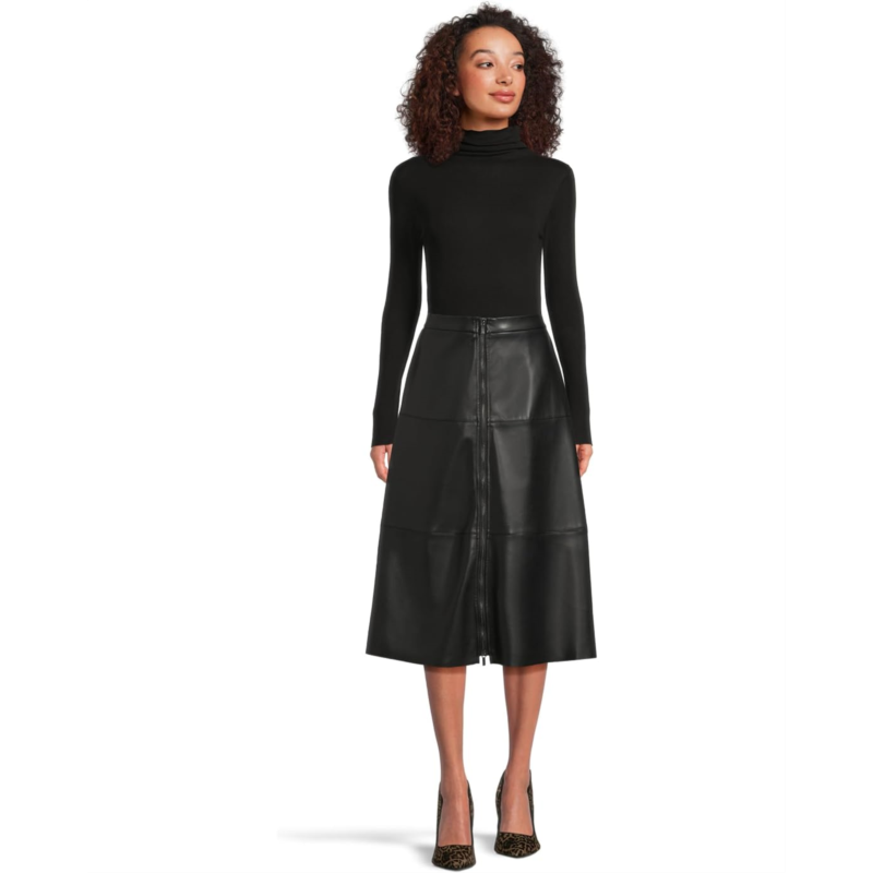 Make your style statement wearing the Elliott Lauren Vegan Leather Long Skirt. This pull-on skirt features a full zippered front closure for easy on and off. Made from polyurethane, this mid-rise skirt is perfect to pair with different casual tops and formal shirts.