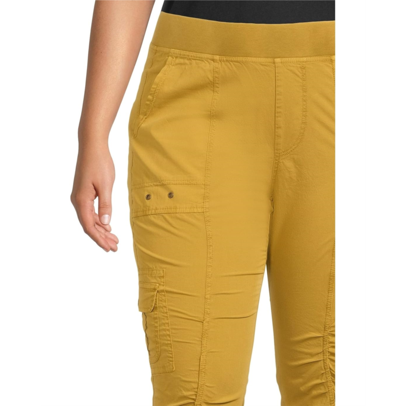 Enjoy the all-day comfort wearing the XCVI Tilton Leggings. It features elasticized waistband, skinny-cut leg, two side hand pockets, two cargo pockets, and mid-rise silhouette. XCVI staples such as ruching grace the front leg of this grommet-detailed cargo crop.