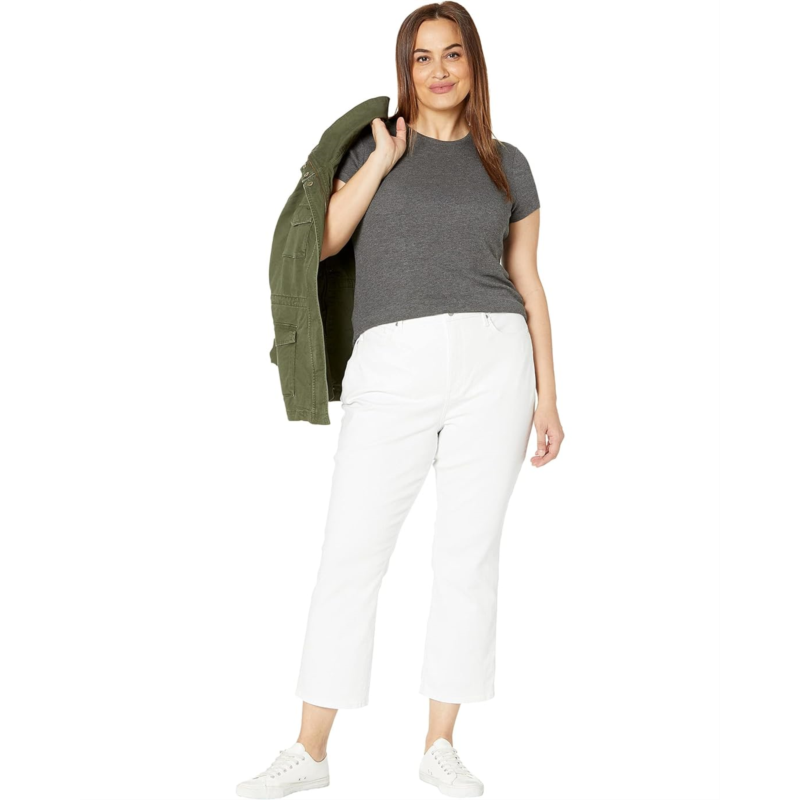 Add to your warm weather wardrobe with the NYDJ Plus Size Plus Size Slim Boot Ankle Jeans in Optic White. These stretch cotton-blend jeans are crafted with a button and zip-fly closure, classic five-pocket design and a cropped hemline to keep your style versatile.