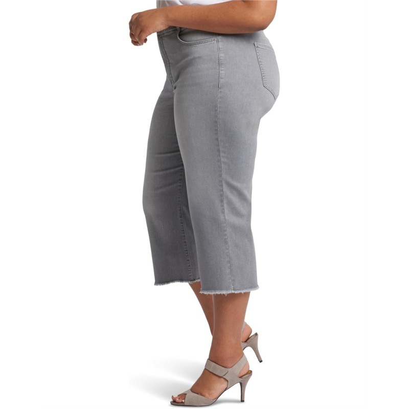 Express your style in radiating sophistication as you wear the NYDJ Plus Hr Brigitte Wide Leg Capri. The high-rise bottomwear features a belt-loop waist with classic five-pocket construction and frayed hem.