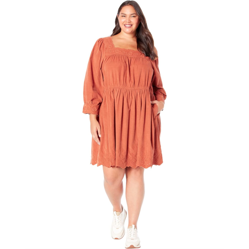 Get a flattering look while experiencing unrivaled comfort on your outings donning the Madewell Plus Embroidered Corduroy Square-Neck Mini Dress.