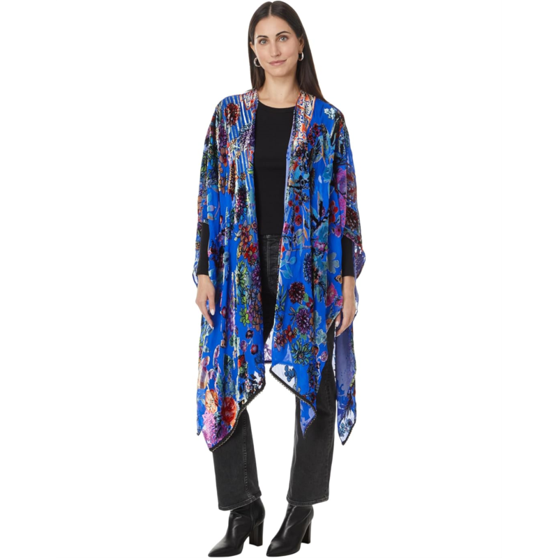 Wrap yourself in effortless style adorning the Johnny Was Burnout Velvet Shawl - a fashion-forward statement piece! Featuring a stunning floral burnout print, this shawl effortlessly combines elegance and boldness. Designed for easy wear with a pull-on style, it drapes beautifully over any outfit, adding a luxurious touch. The rich velvet fabric feels as soft as it looks, making it the perfect accessory for layering or elevating a simple look.