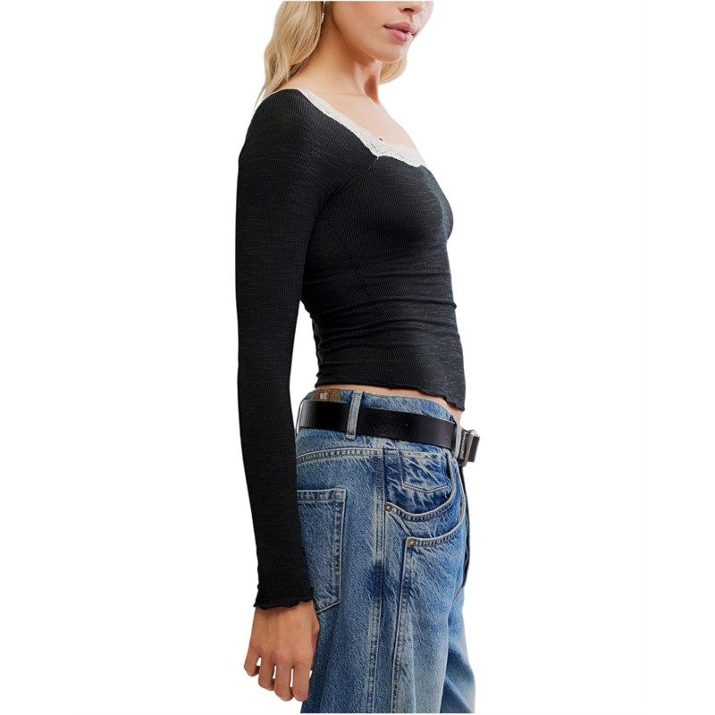 - Wrap yourself in the softness of the Free People Oh My Darling Long Sleeve. Made of a cozy micro rib material, this top features a wide boat neckline with delicate lace piecing for a feminine touch. The lettuce-edged trimming on the hem adds a sweet detail to this must-have piece.