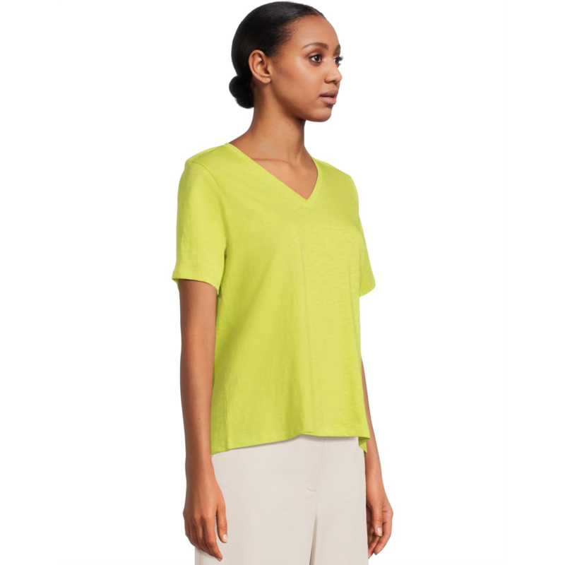 - Elevate your look with this classic EILEEN FISHER V-Neck Short Sleeve Tee.