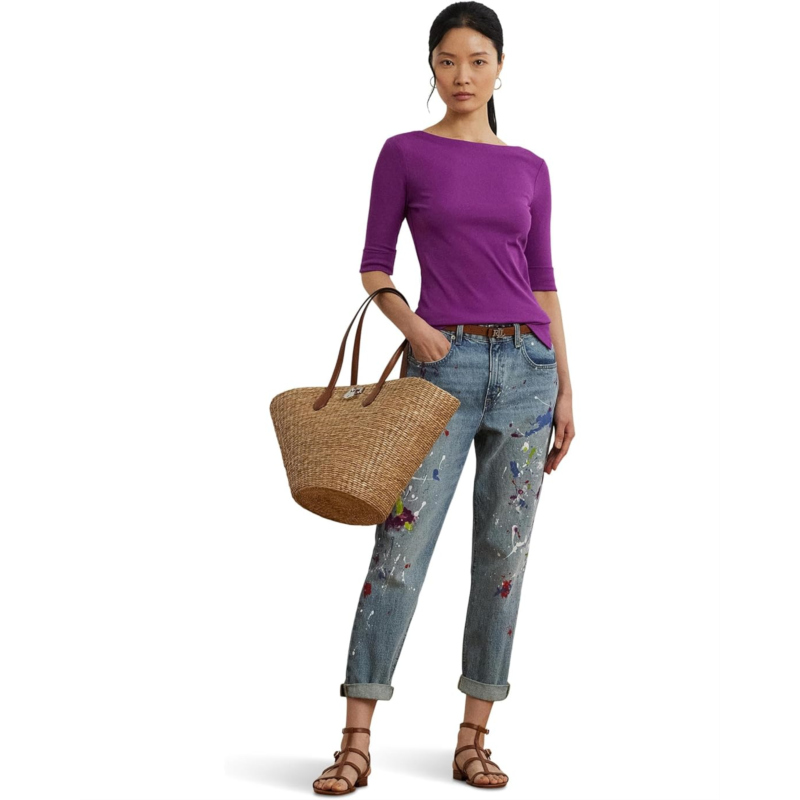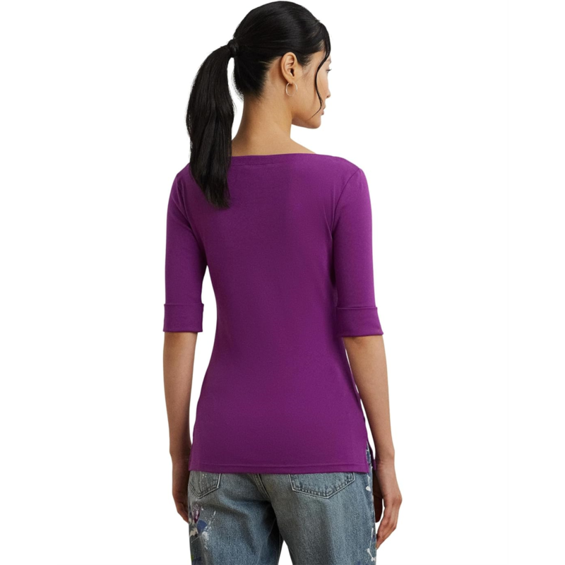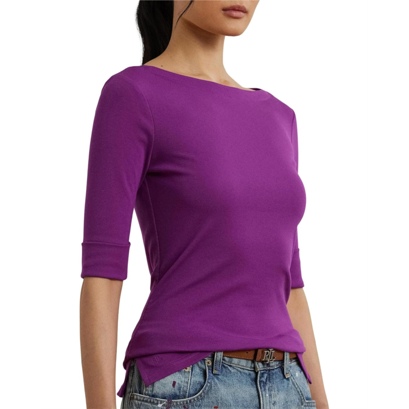 - Elevate your casual wardrobe with the LAUREN Ralph Lauren Petite Stretch Cotton Boatneck Tee. This slim-fitting tee offers a modern silhouette that flatters your figure. The boat neck design adds a touch of elegance, while the elbow-length sleeves with folded cuffs provide a chic and sophisticated look.