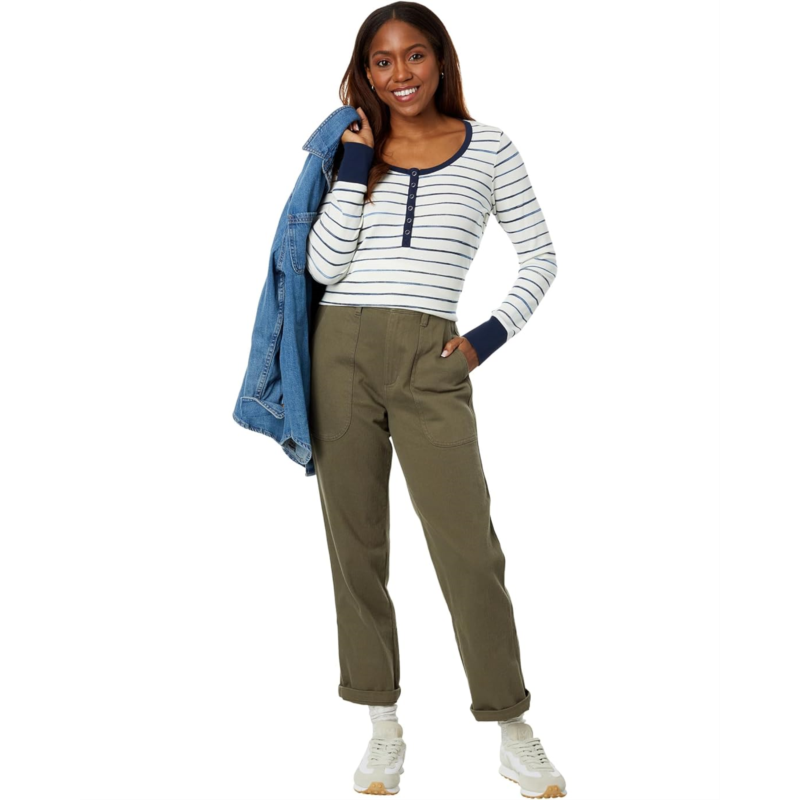 [US] L.L.Bean Womens LLBean Unshrinkable Mini Waffle Henley Long Sleeve Stripe