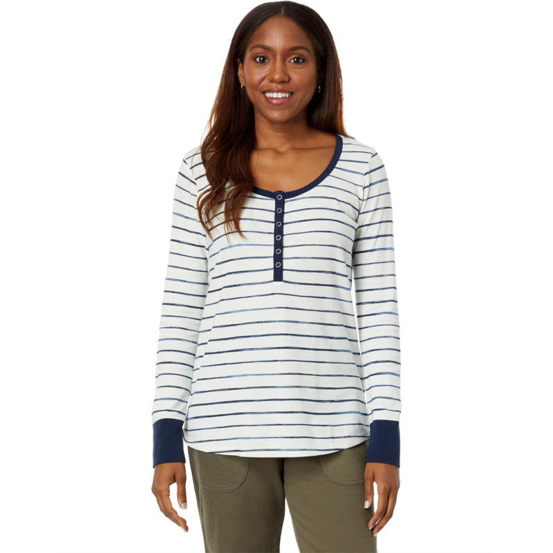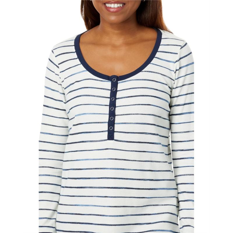 L.L.Bean Womens LLBean Unshrinkable Mini Waffle Henley Long Sleeve Stripe