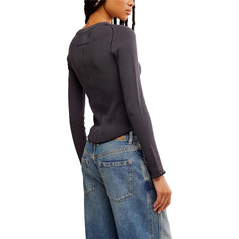 - Elevate your everyday style choosing the Free People Easy Does It Tee! Made from a soft waffle-knit fabrication, this tee is perfect for lounging at home or casual outings. The crew neckline, raglan-cut long sleeves, lettuce-edge trim, and seam detail throughout create a look thats effortlessly chic and on-trend.