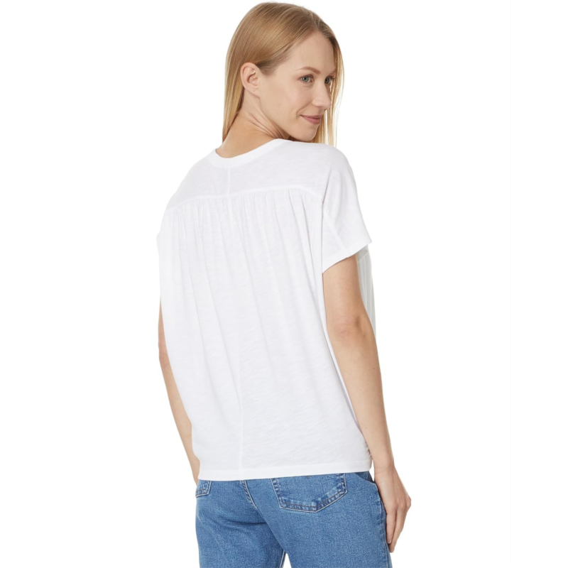 - Give your casual style a chic update with the Lilla P Easy Shirred Short Sleeve Top, crafted in coveted cotton and modal slub fabric. The oversized tee is designed with a slightly shorter body length to balance the relaxed shape. It features a crew neck, short sleeves, beautiful shirring details on the front & back, and a straight hem. Pair this versatile piece with anything from denim to sweats.