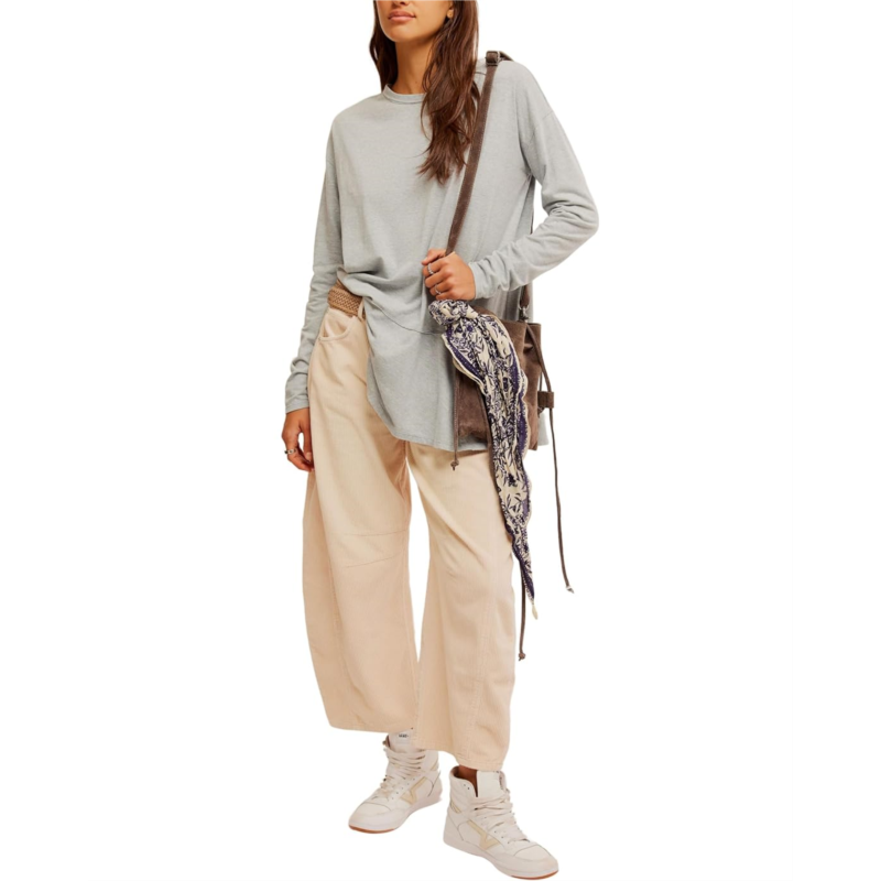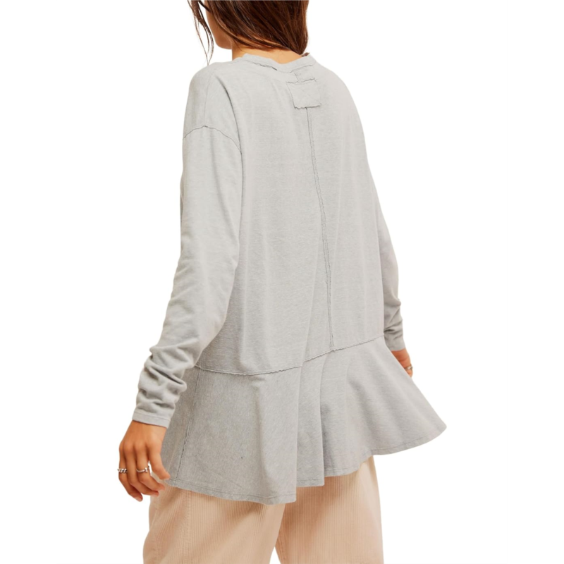 - Turn up the fashion flair wearing the Free People Paris Tee. This peplumkorea breathable top features a crew neckline with drop shoulder seams, long sleeves, and side slits.