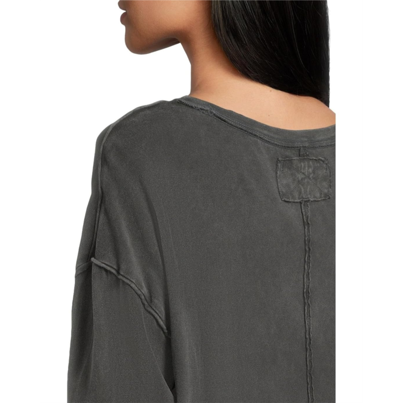 - Long sleeve silhouette with distressed seaming throughout.