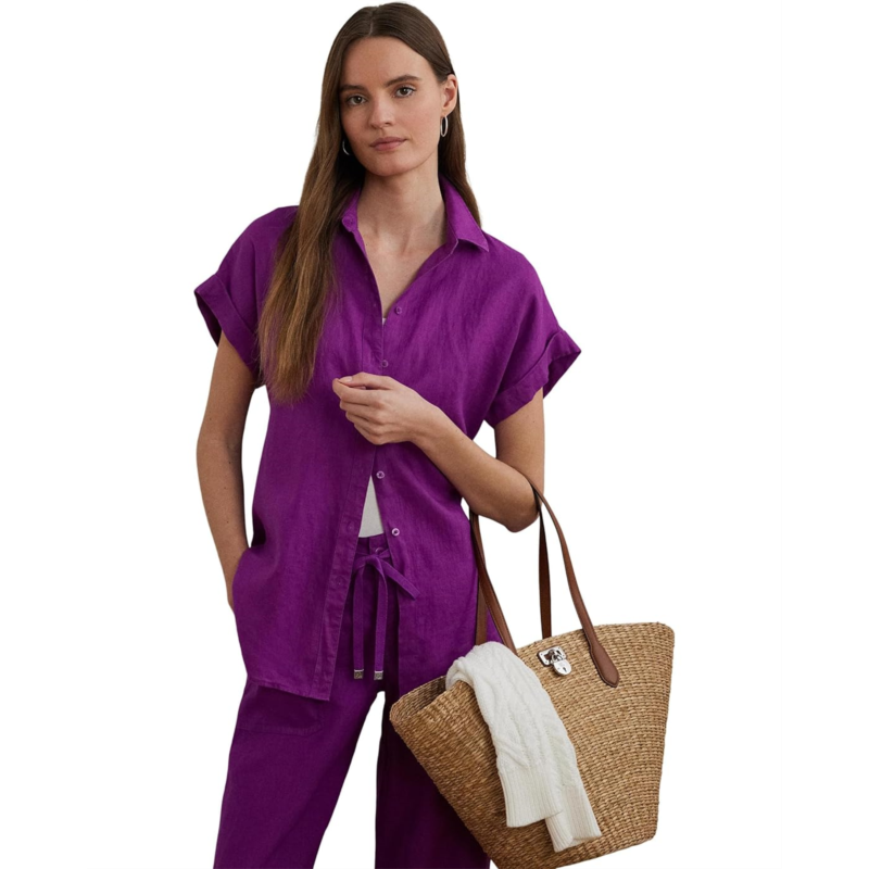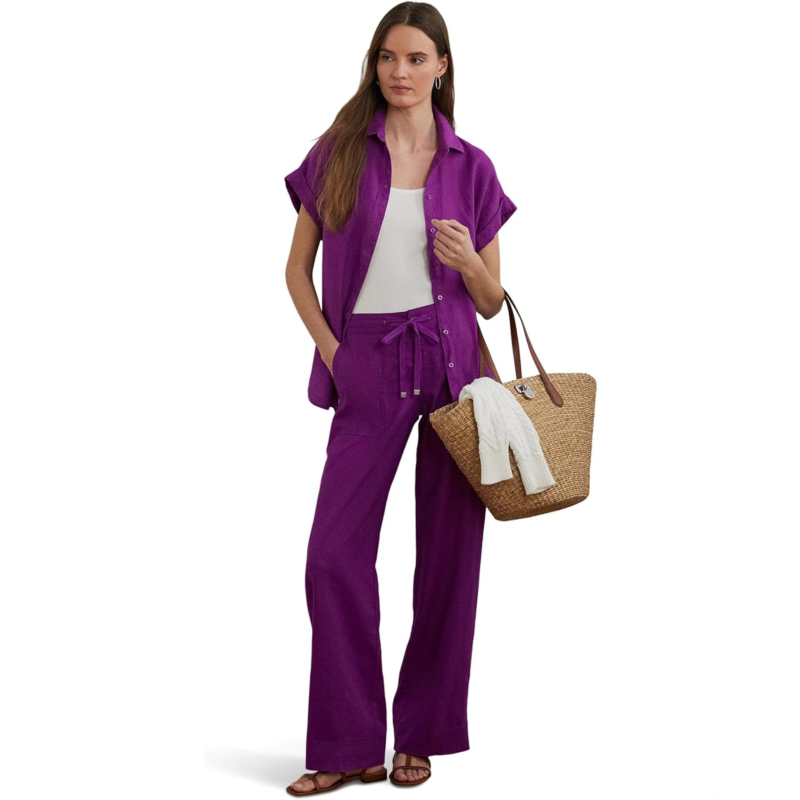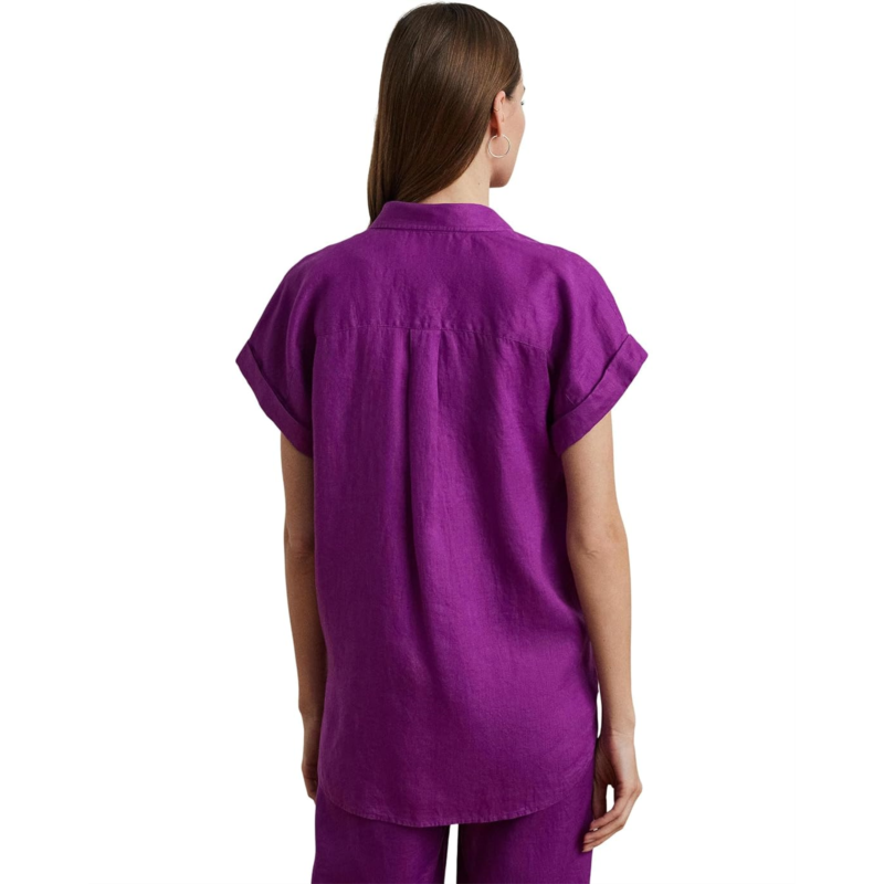 [US] POLO RALPH LAUREN Womens Lauren Ralph Lauren Petite Relaxed Fit Linen Short-Sleeve Shirt