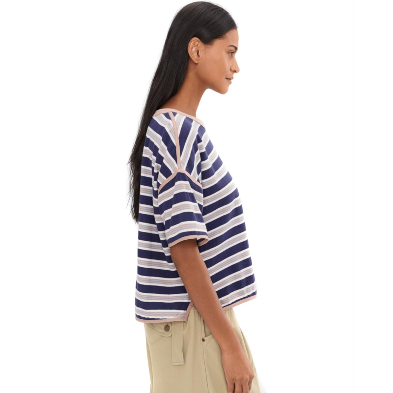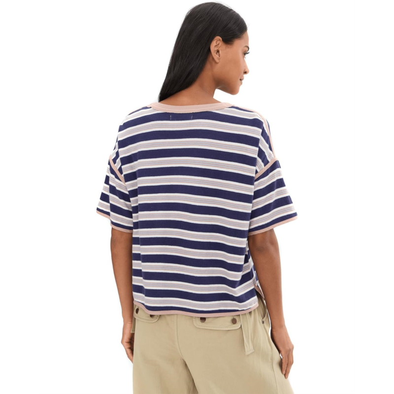 - Sporty, retro, comfy-were bringing all of our favorite vibes into one tee with this Free People We The Free Clean Rugby Tee, featured in a cropped, boxy fit with a fun striped print and extra wide short sleeves. It has a comfy cotton jersey fabrication along with a trendy scoop neckline with contrast trim.