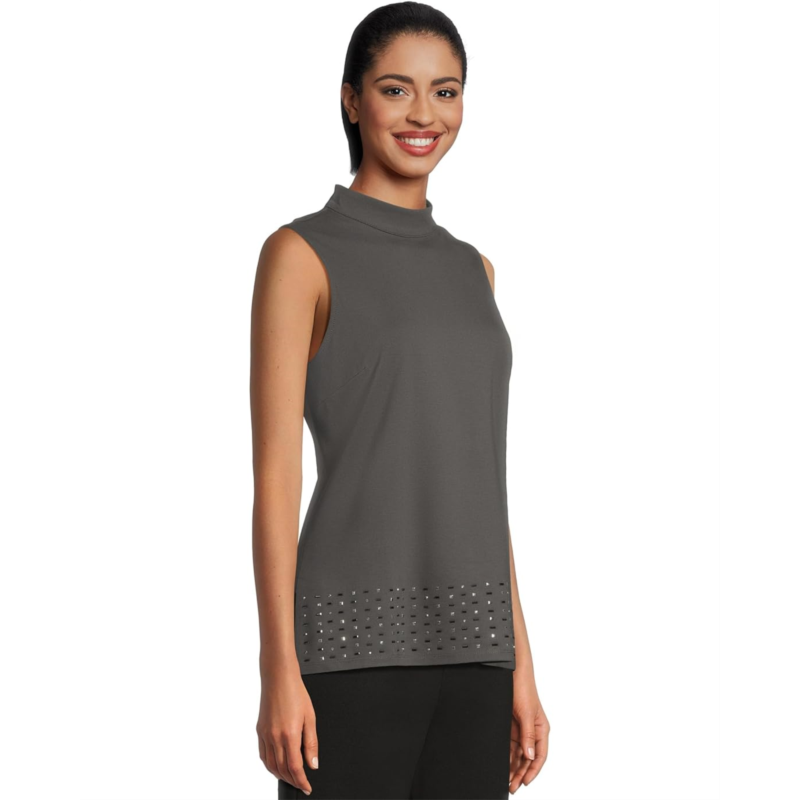 - The Vince Camuto Mock Neck Sleeveless Tunic offers a sleek, minimalist silhouette with modern versatility. Designed with a structured mock neckline and elongated hem, it delivers a polished look that transitions effortlessly from day to night.