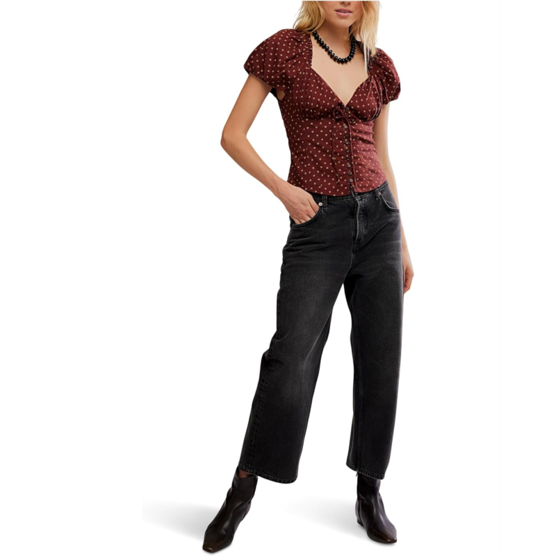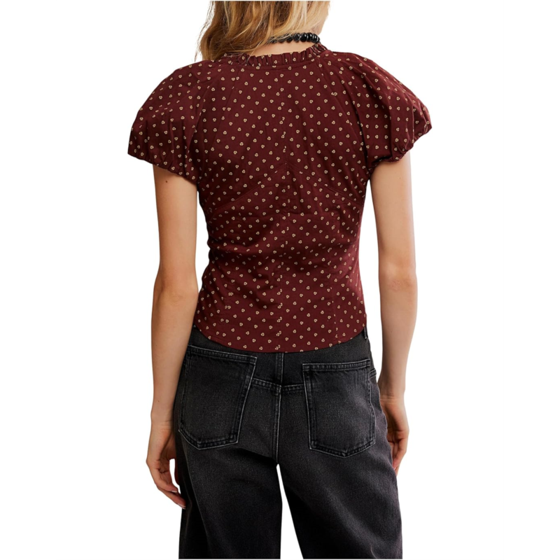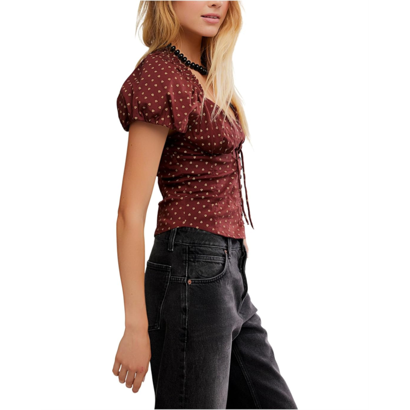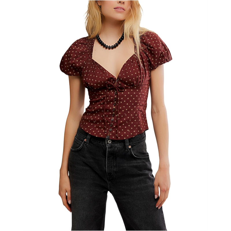 - The Free People Summer Printed Blouse brings bohemian charm to everyday style with its lived-in feel and timeless femininity. Designed in a classic fit that flatters every figure, this blouse features a sweetheart neckline and cap short sleeves that add a soft, graceful touch. The button front closure and delicate bow design infuse playful detail, while the pull-on style ensures easy, breezy wearability.