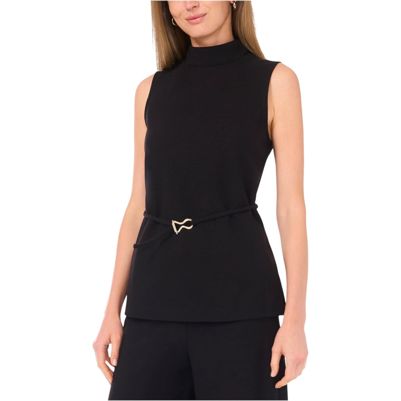 - From the desk to dinner, step out in chic style in the Vince Camuto Mock Neck Sleeveless Top with Tie. This sleeveless top features a mock neckline, back keyhole with double button-and-loop closure, adjustable belt, and a straight hemline.