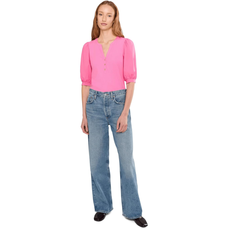 - Introducing the Lilly Pulitzer Ronson Knit Top! Stay stylish and comfortable in this straight-fit top featuring a crew-notched neckline with branded buttons on the front placket. The woven puff elbow-length sleeves and smocked cuffs add a fun touch, while the straight hem ensures a flattering fit. Perfect for any occasion!