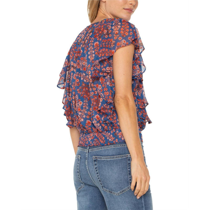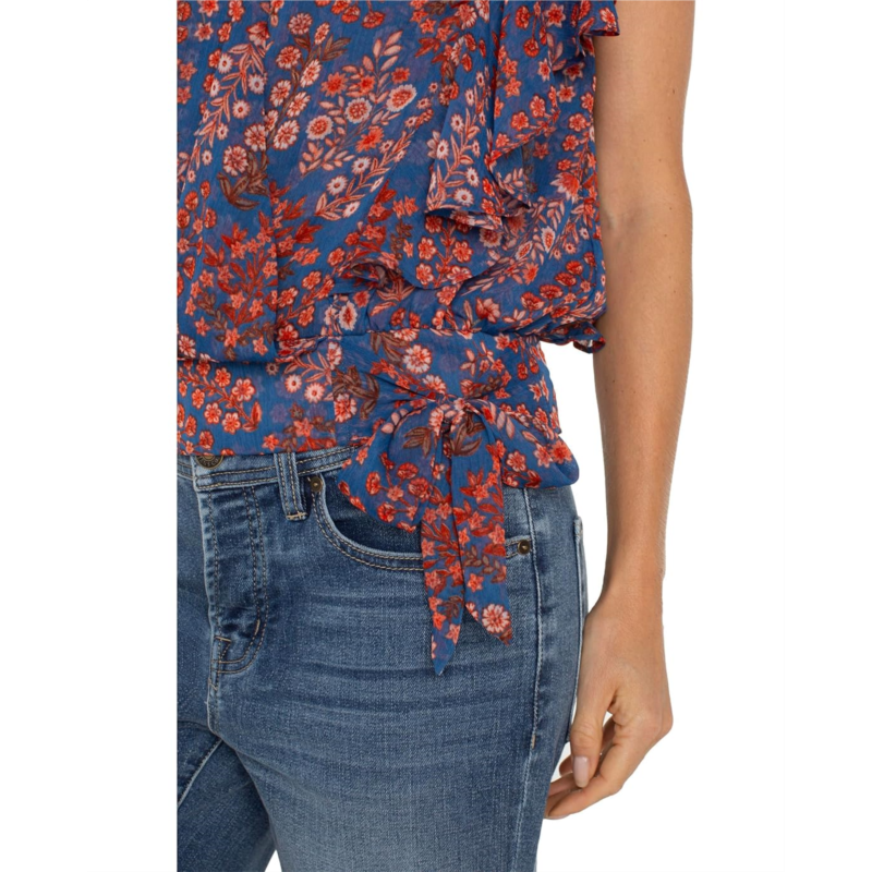 - Brighten your wardrobe with the Liverpool Los Angeles Short Sleeve Ruffle Sleeve Draped Front Woven Blouse.