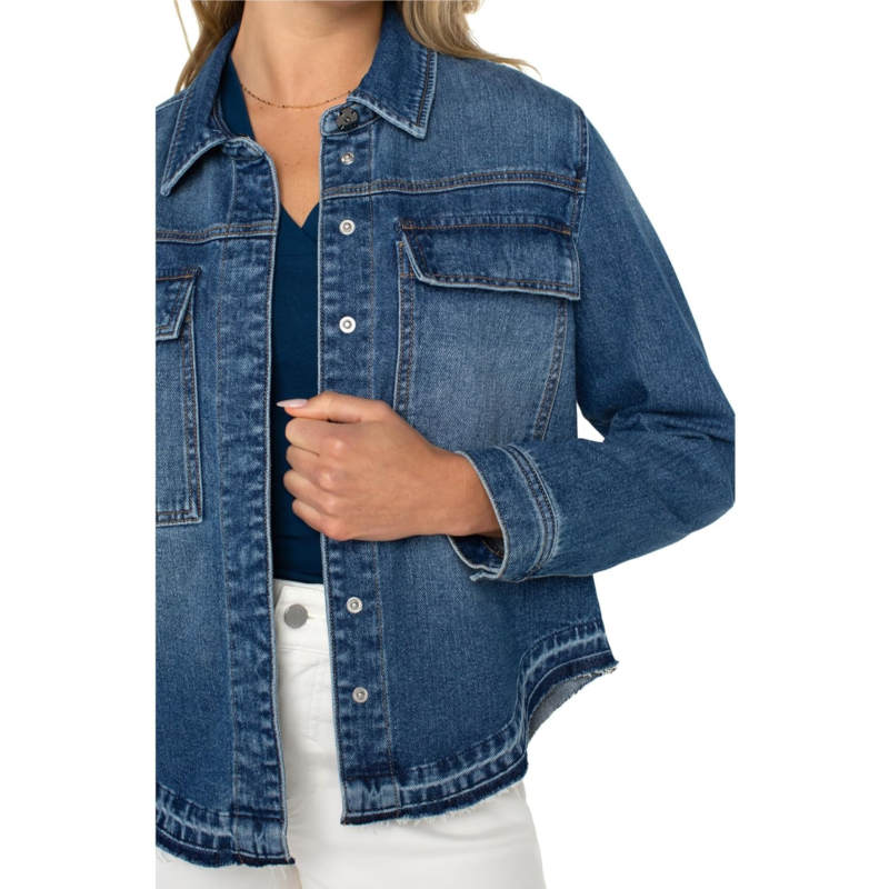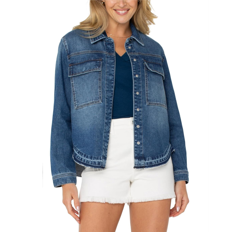 - Walk in style wearing the Liverpool Los Angeles Split Back Denim Shirt Jacket.