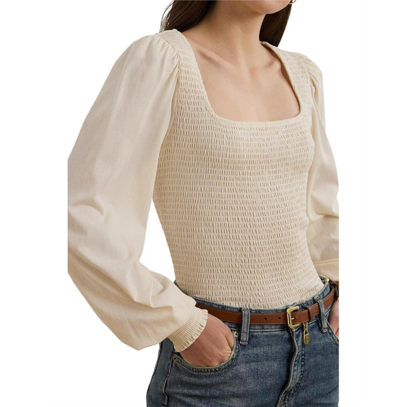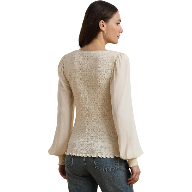 [US] POLO RALPH LAUREN Womens Lauren Ralph Lauren Smocked Jersey Blouson Sleeve Top
