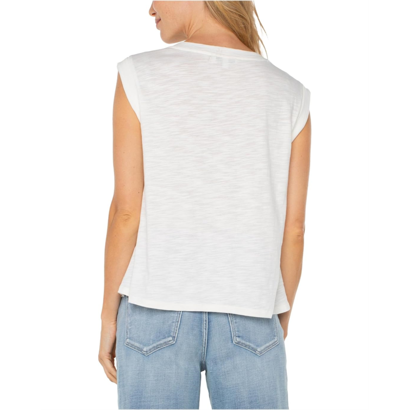- Enhance your daily attire with this elegant and classic Liverpool Los Angeles Petite Sleeveless Woven to Knit Top. Showcasing a beautiful woven front that adds depth and refinement. The knit back allows for comfort and motion. Effortlessly transitions from day to night.