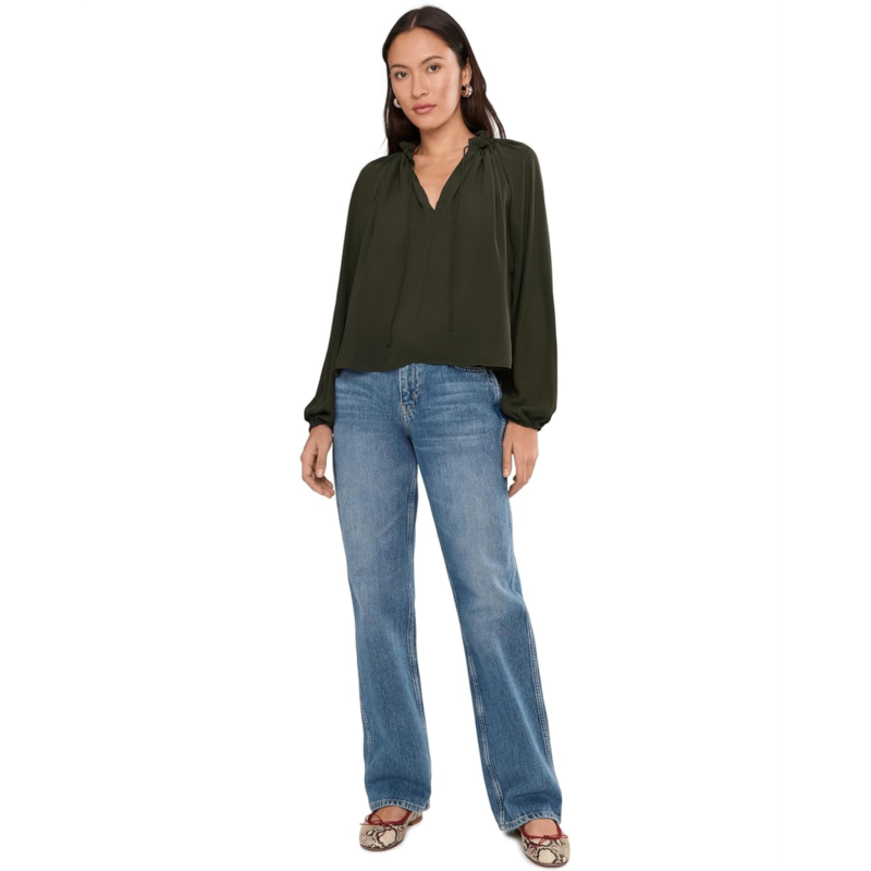 - Everyday chic. The Madewell Nayla Top is the perfect addition to your wardrobe styling with a split neckline and ties, long sleeves with elastic cuffs and gathered detailing in back. Pair it with your favorite denim for an effortless look.