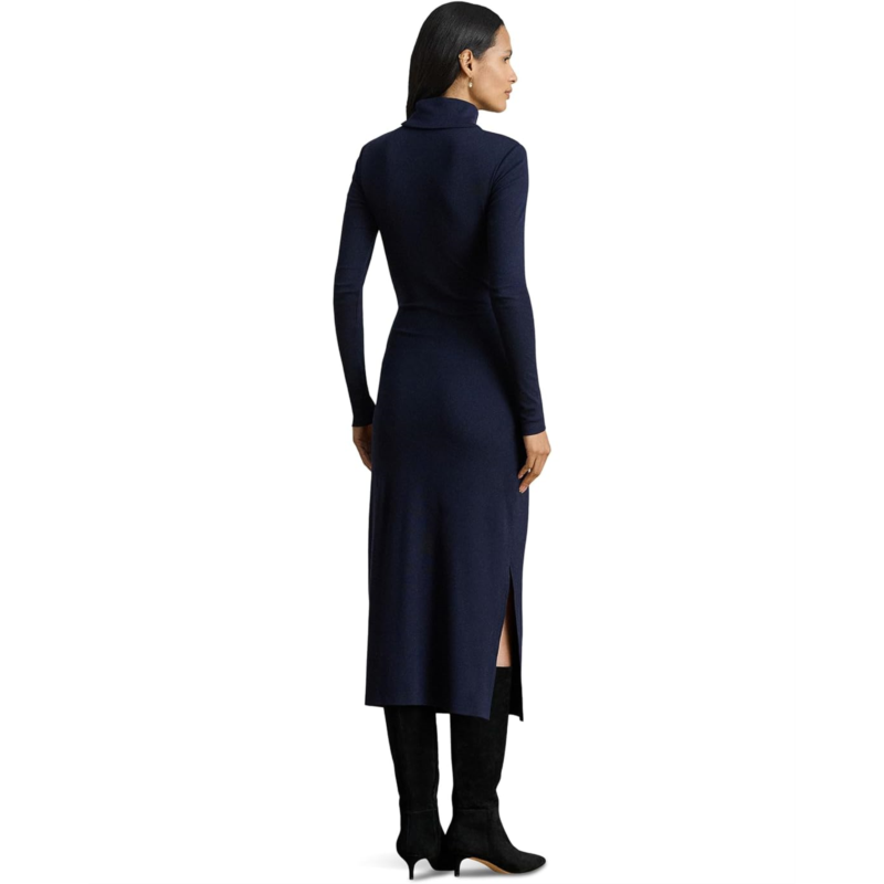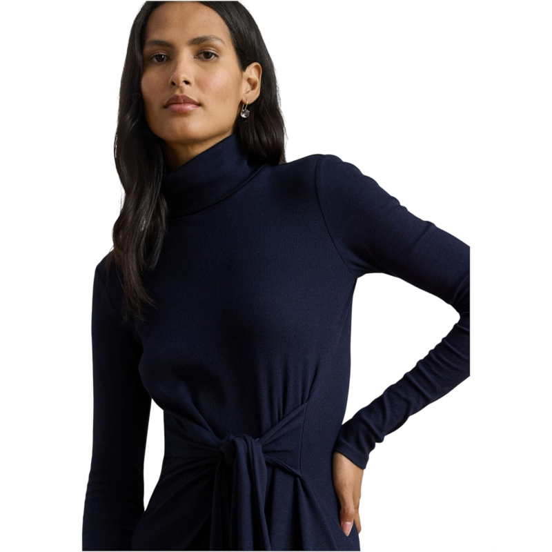- Rib-knit with a soft stretch-cotton blend, the Lauren Ralph Lauren Petite Tie-Front Turtleneck Dress is cut for a slim-fitting silhouette and a calf-grazing midi length. A tie-front design at the waist adds contemporary flair to this refined piece, while slits at the hem afford ease of movement. This midi dress is styled with long sleeves, a turtle neckline, and a straight hem. The self-ties at the waist extend from the side seams, offering a perfect fit.