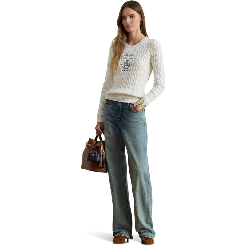 [US] POLO RALPH LAUREN Womens Lauren Ralph Lauren Embroidered-Crest Cable-Knit Sweater