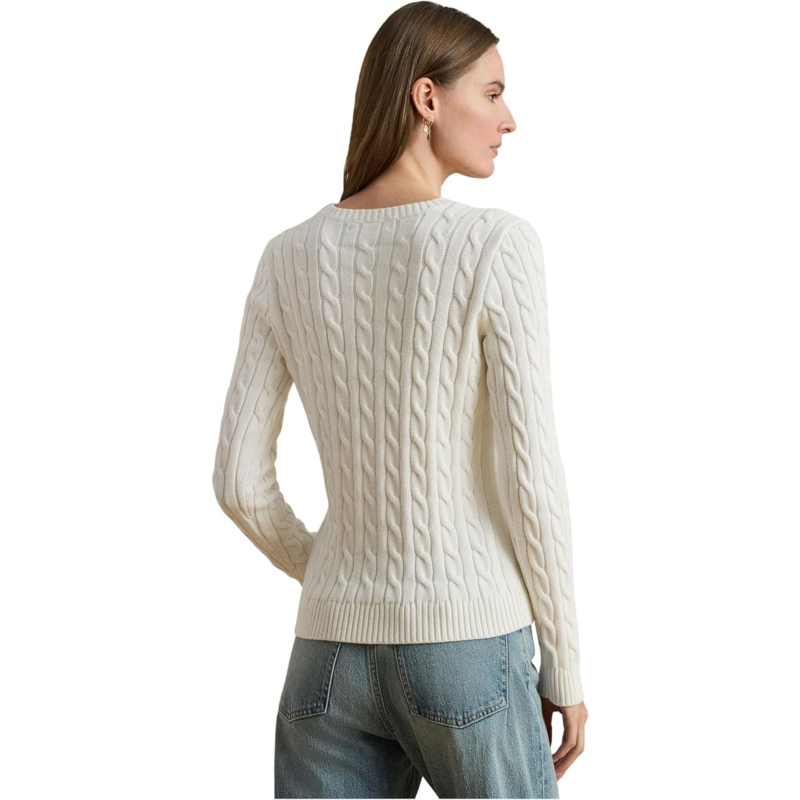 - A timeless cable-knit pattern brings texture and dimension to this Lauren Ralph Lauren Embroidered-Crest Cable-Knit Sweater, which displays Laurens signature embroidered crest at the chest. Made from cotton, this pullover sweater is styled with long sleeves, ribbed cuffs, a ribbed crew neckline, and a ribbed hem.