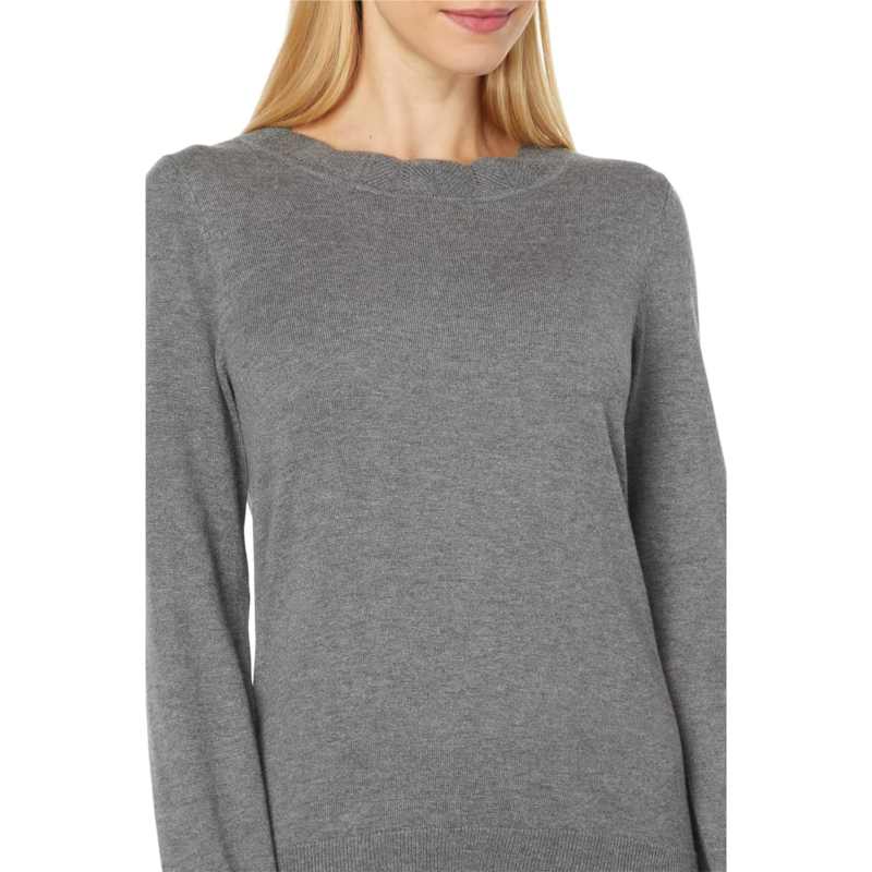- Pull-over styling with a ribbed crew neckline.