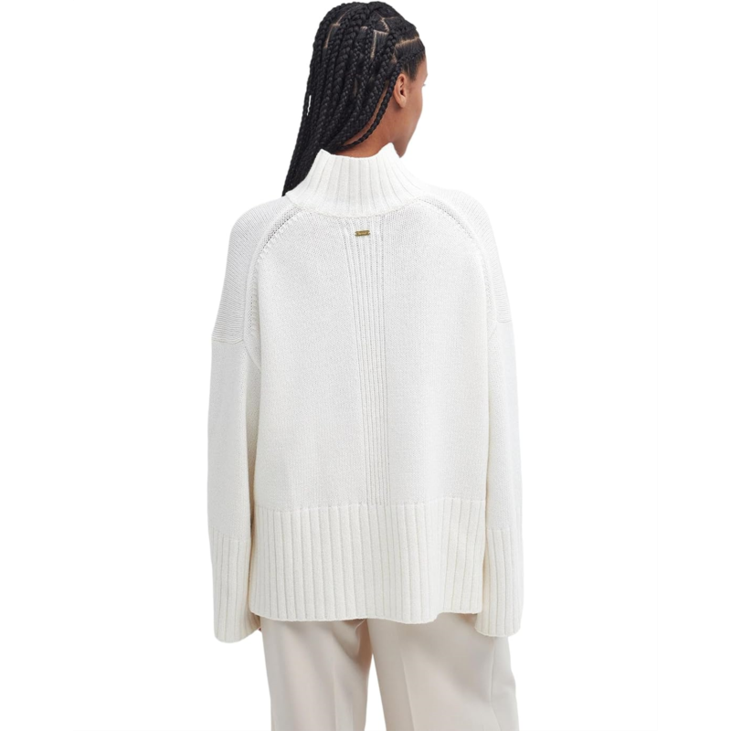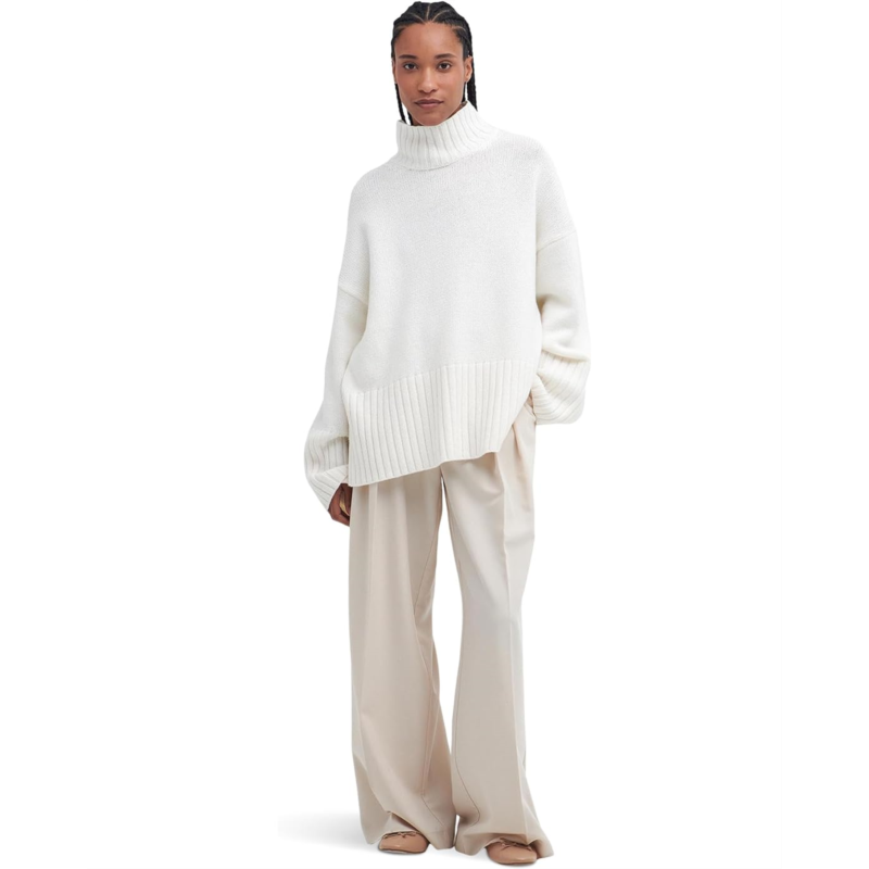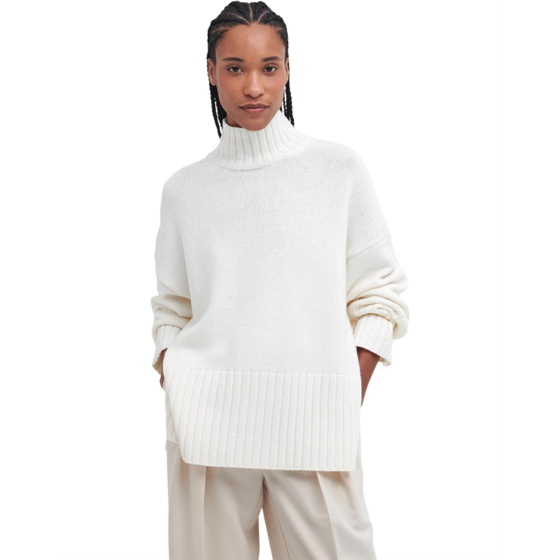 - Feel warm and cozy vibes wearing the Barbour Barbour Serena Knitted Jumper. This pull-on style, knit jumper features a funnel neck, dropped shoulders, long sleeves with ribbed cuffs, and a straight wide, ribbed hem with side splits for absolute ease of movement.