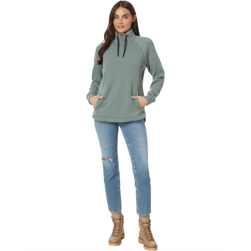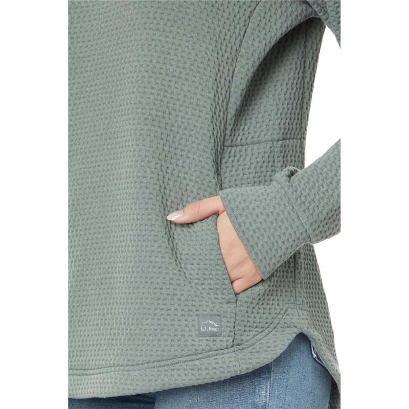 - Explore outdoors and embrace your nomadic spirit with this functional L.L.Bean Ridgeknit Crossneck Pullover shirt. This rich knit pullover has a soft textured exterior for a modern look. It features funnelneck with unique crossover styling and drawcords to keep out the cold, kangaroo pocket, droptail tulip hem, and thumbholes for ease of layering.