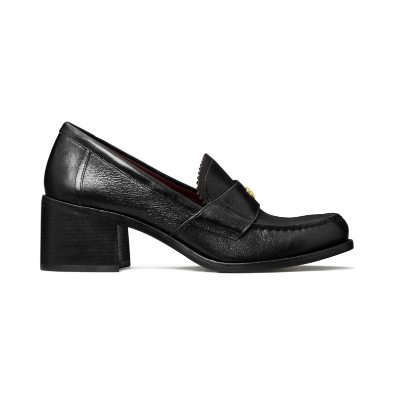 - Timeless elegance meets modern flair wearing Tory Burch Classic Heeled Loafers 55MM. Crafted from premium leather for the upper, lining, insole, and outsole, these loafers ensure luxurious comfort and durability. The chic block heel adds height and stability, perfect for all-day wear. Easy pull-on style with a sleek design on the upper offers a sophisticated touch to any outfit.