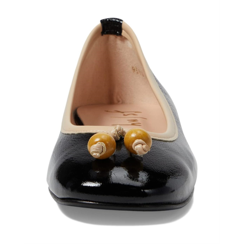 - Set yourself apart from the crowd while making every move in a sleek and elegant style wearing the French Sole Rumba Flats. This exclusive pair of slip-on shoes comes with a striking beaded tie embellishment on the Naplak upper, a squared closed toe, and a stacked heel.